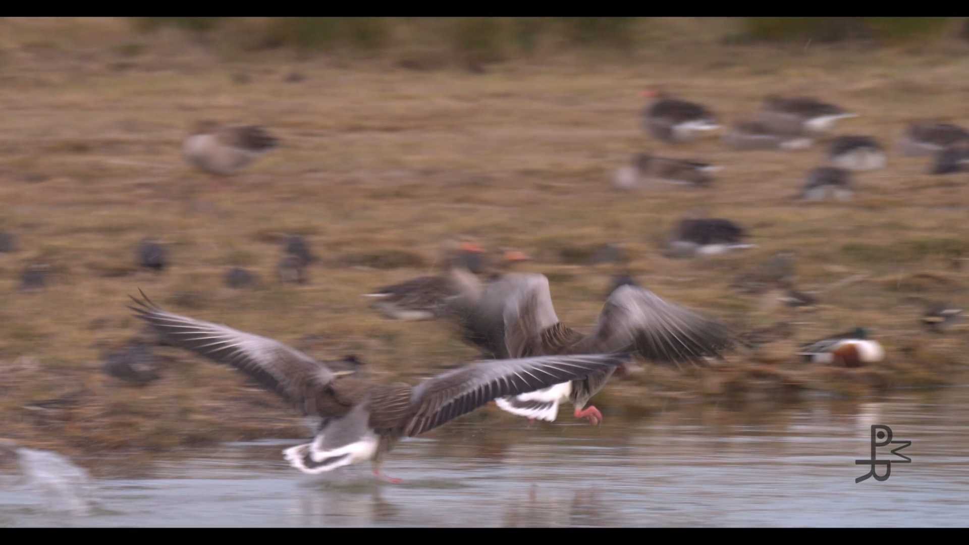 Descrito por el equipo de Konrad Lorenz, el Ánsar común realiza este complejo display ante la hembra para alejar a un rival. Tiene un efecto vinculante.