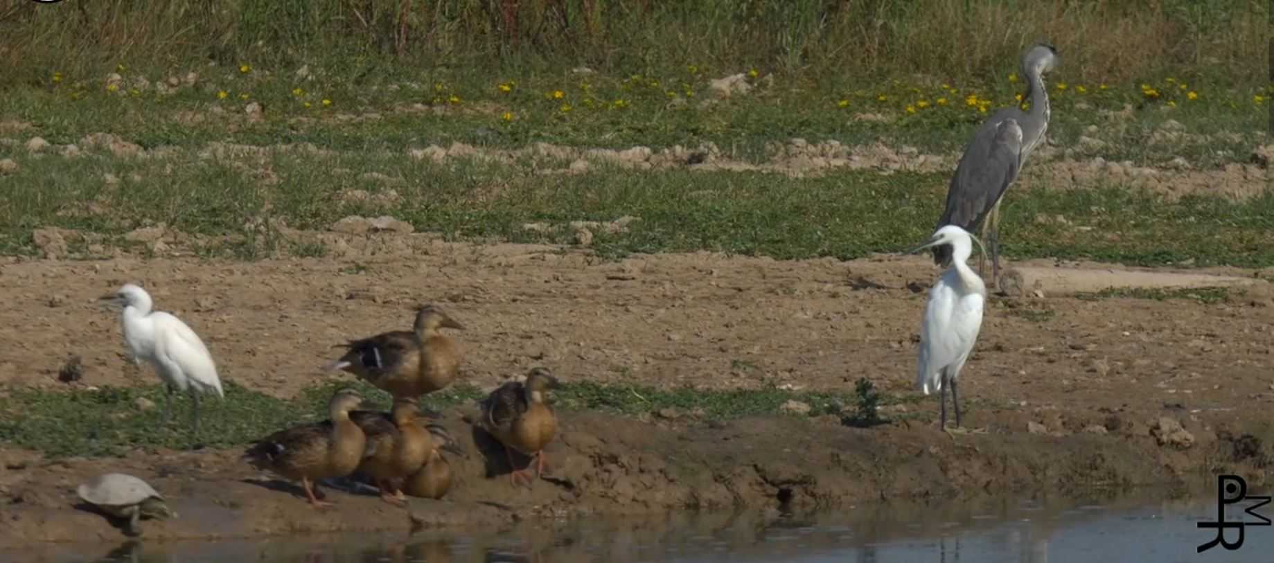 Una hembra de ánade real y otra de cigúeñuela presumen de sus polluelos, ávidos y entrañables exploradores de su nueva vida.